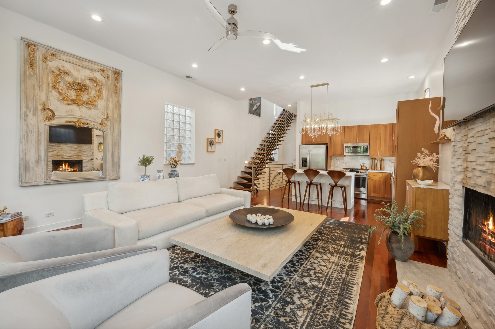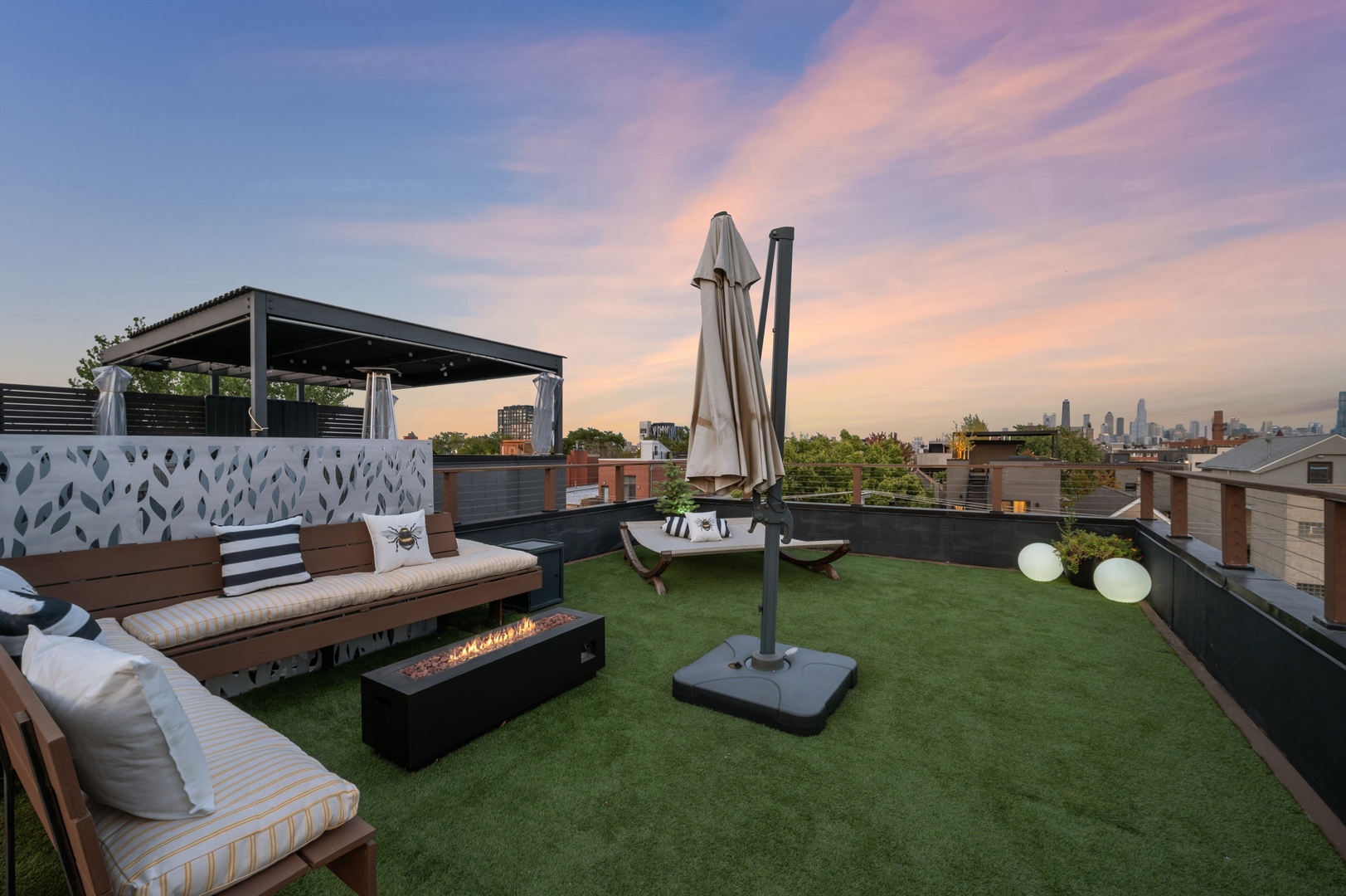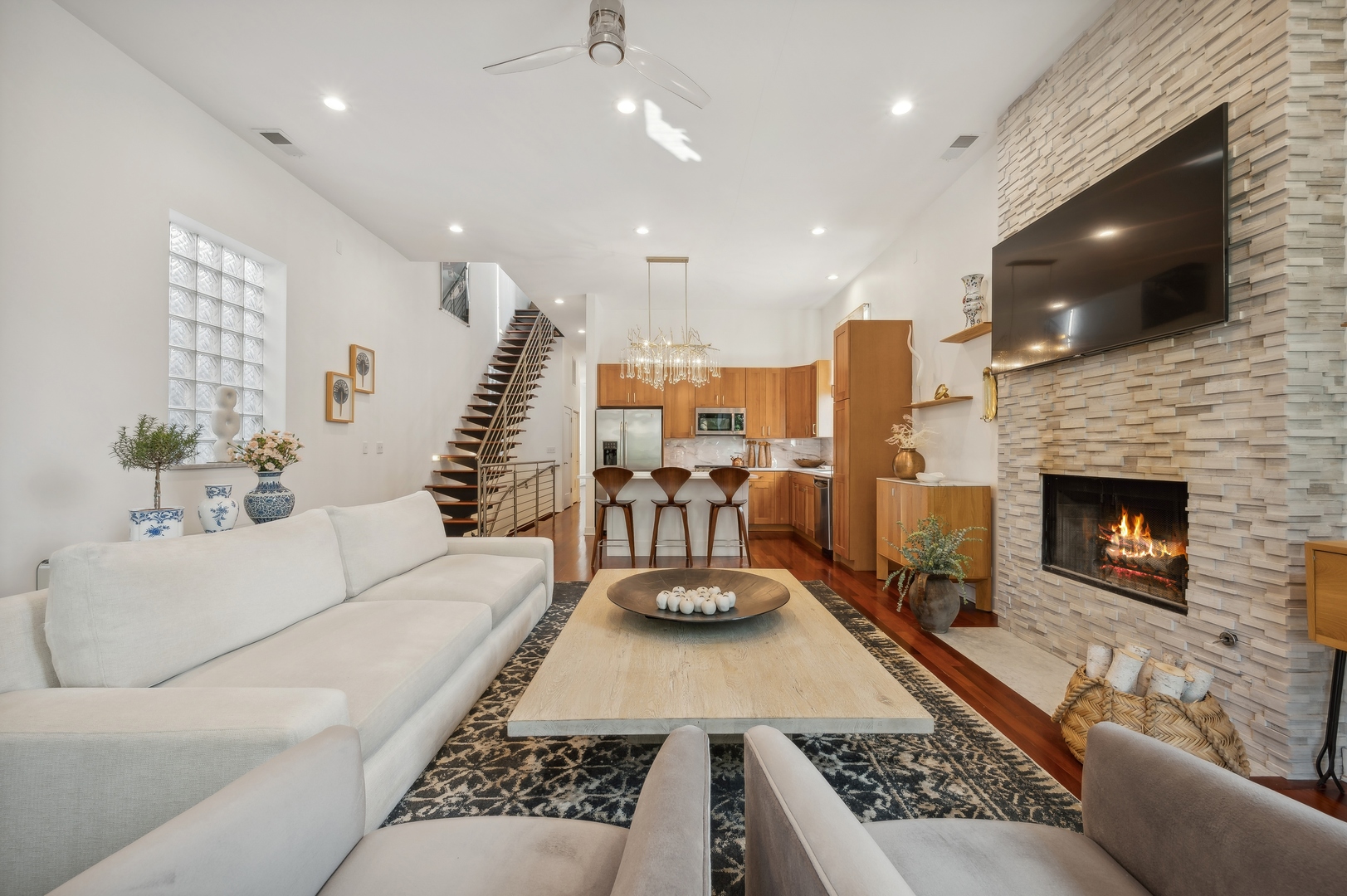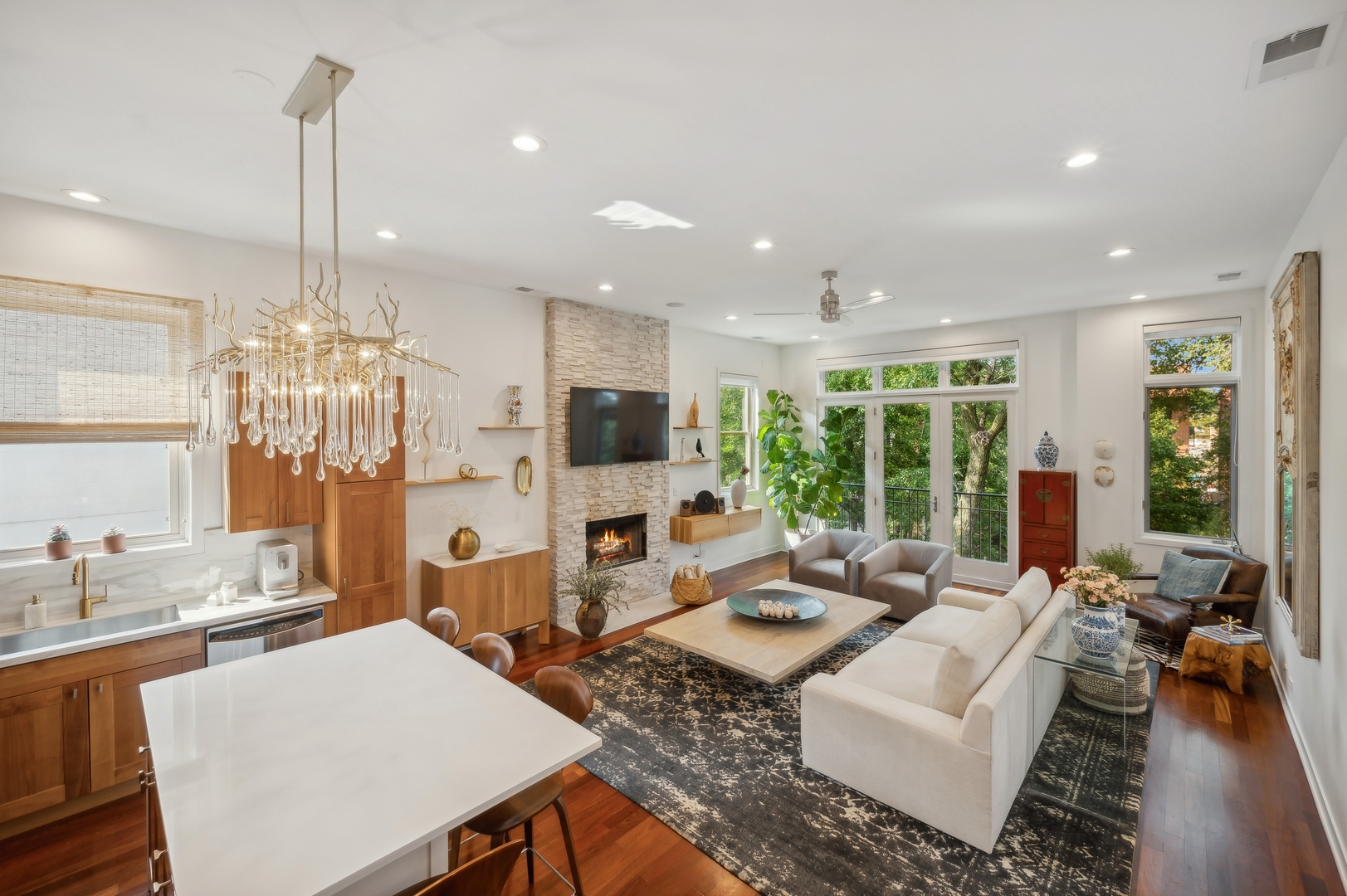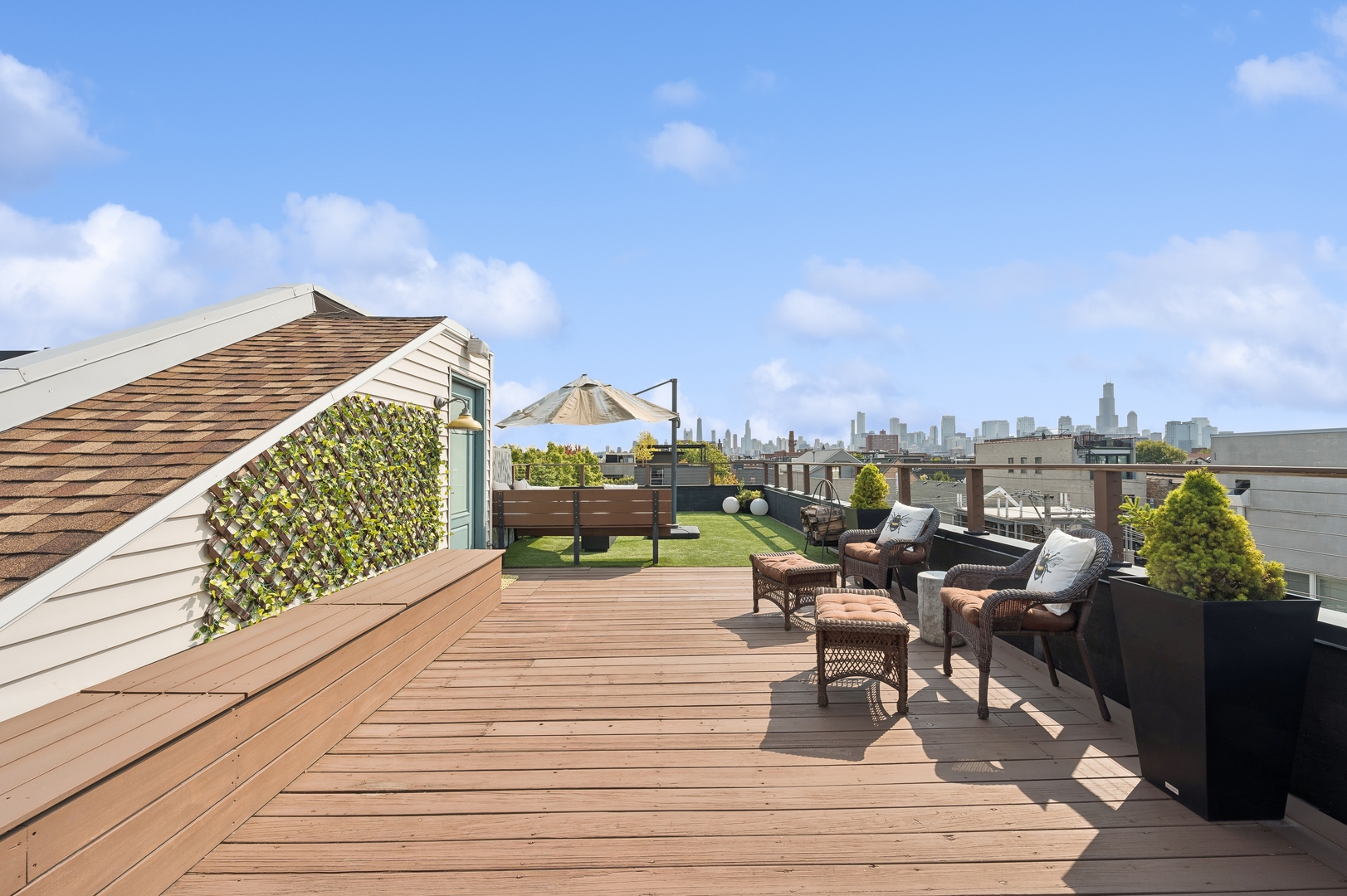 East Village Penthouse with private built out Rooftop deck! Located in the heart of booming West Town, this meticulously updated 2 bed, 2 bath condo with 11ft ceilings offers breathtaking finishes met with timeless charm. This sun-drenched, west-facing, open concept floor plan features a stunning remodeled kitchen - upgrades include quartz island, porcelain countertops, GE 6 burner range and complete GE appliance package. Living room features a stunning stone gas burning fireplace, Carrera marble window ledges, new window treatments, lighting fixtures, ceiling fans and hardware throughout. Right off the living room is easy access to a private built out rooftop deck with skyline views. Down the hall you'll find a gorgeously remodeled guest bathroom and shower, second bedroom and primary bedroom with updated dual vanity ensuite bathroom with a separate shower/jacuzzi tub. Primary bedroom features a recently built out closet and storage system, brand new hardwood floors and an additional outdoor space with brand new Trex decking. Other updates include newly carpeted stair runner entry, Pella doors, Nest Eco thermostat and brand new LG thinQ washer/dryer package. Assigned garage parking space included in the price. Steps to restaurants and cafes, boutique shopping, CTA blue line and all that West Town has to offer!