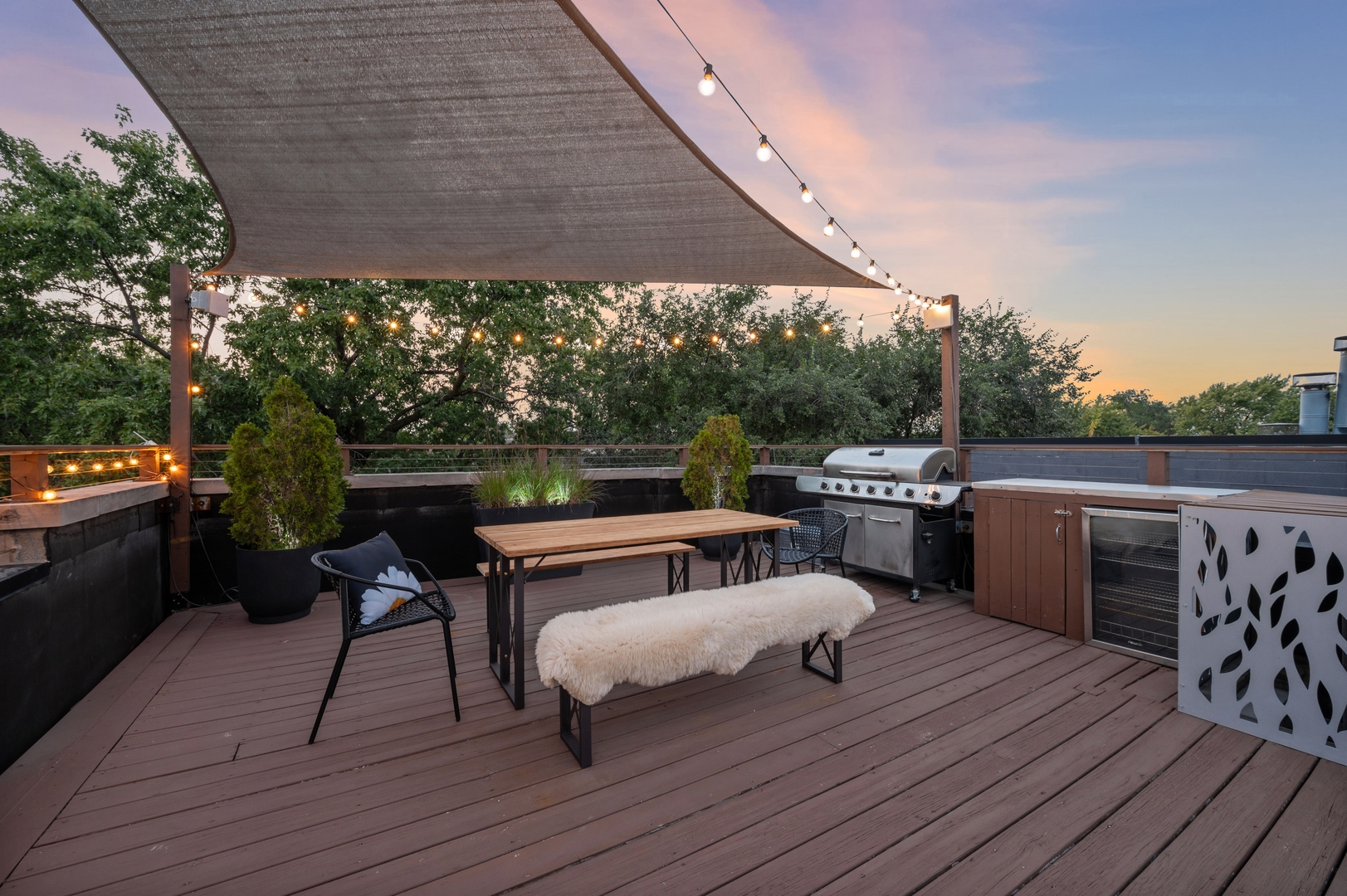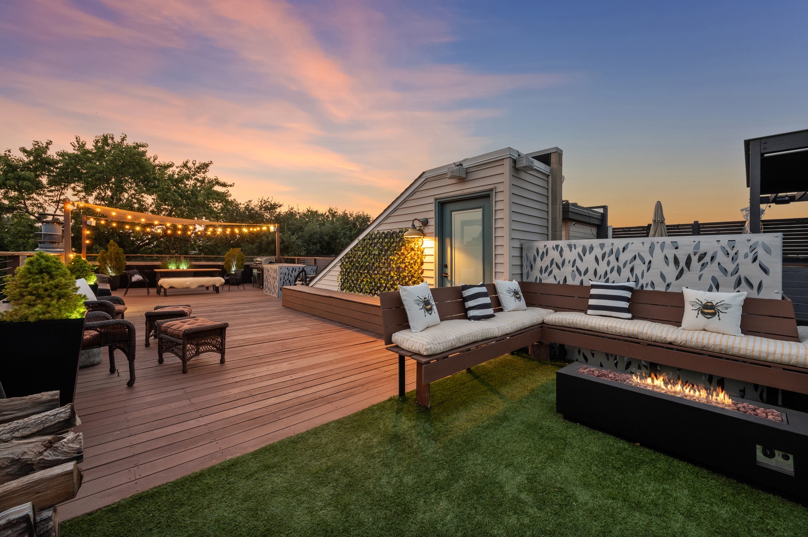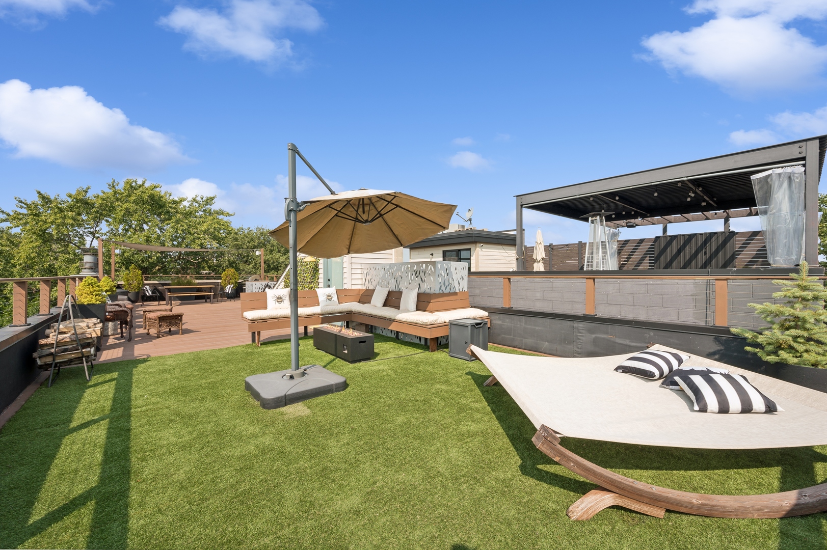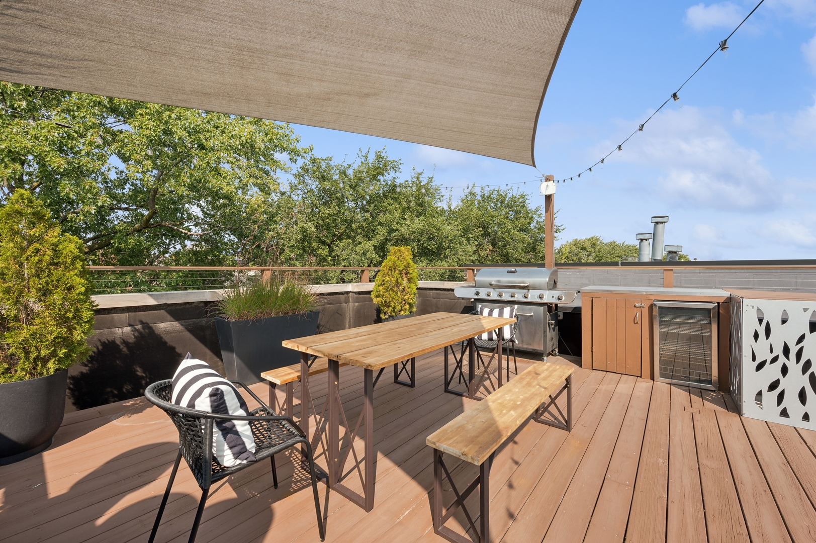 East Village Penthouse with private built out Rooftop deck! Located in the heart of booming West Town, this meticulously updated 2 bed, 2 bath condo with 11ft ceilings offers breathtaking finishes met with timeless charm. This sun-drenched, west-facing, open concept floor plan features a stunning remodeled kitchen - upgrades include quartz island, porcelain countertops, GE 6 burner range and complete GE appliance package. Living room features a stunning stone gas burning fireplace, Carrera marble window ledges, new window treatments, lighting fixtures, ceiling fans and hardware throughout. Right off the living room is easy access to a private built out rooftop deck with skyline views. Down the hall you'll find a gorgeously remodeled guest bathroom and shower, second bedroom and primary bedroom with updated dual vanity ensuite bathroom with a separate shower/jacuzzi tub. Primary bedroom features a recently built out closet and storage system, brand new hardwood floors and an additional outdoor space with brand new Trex decking. Other updates include newly carpeted stair runner entry, Pella doors, Nest Eco thermostat and brand new LG thinQ washer/dryer package. Assigned garage parking space included in the price. Steps to restaurants and cafes, boutique shopping, CTA blue line and all that West Town has to offer!