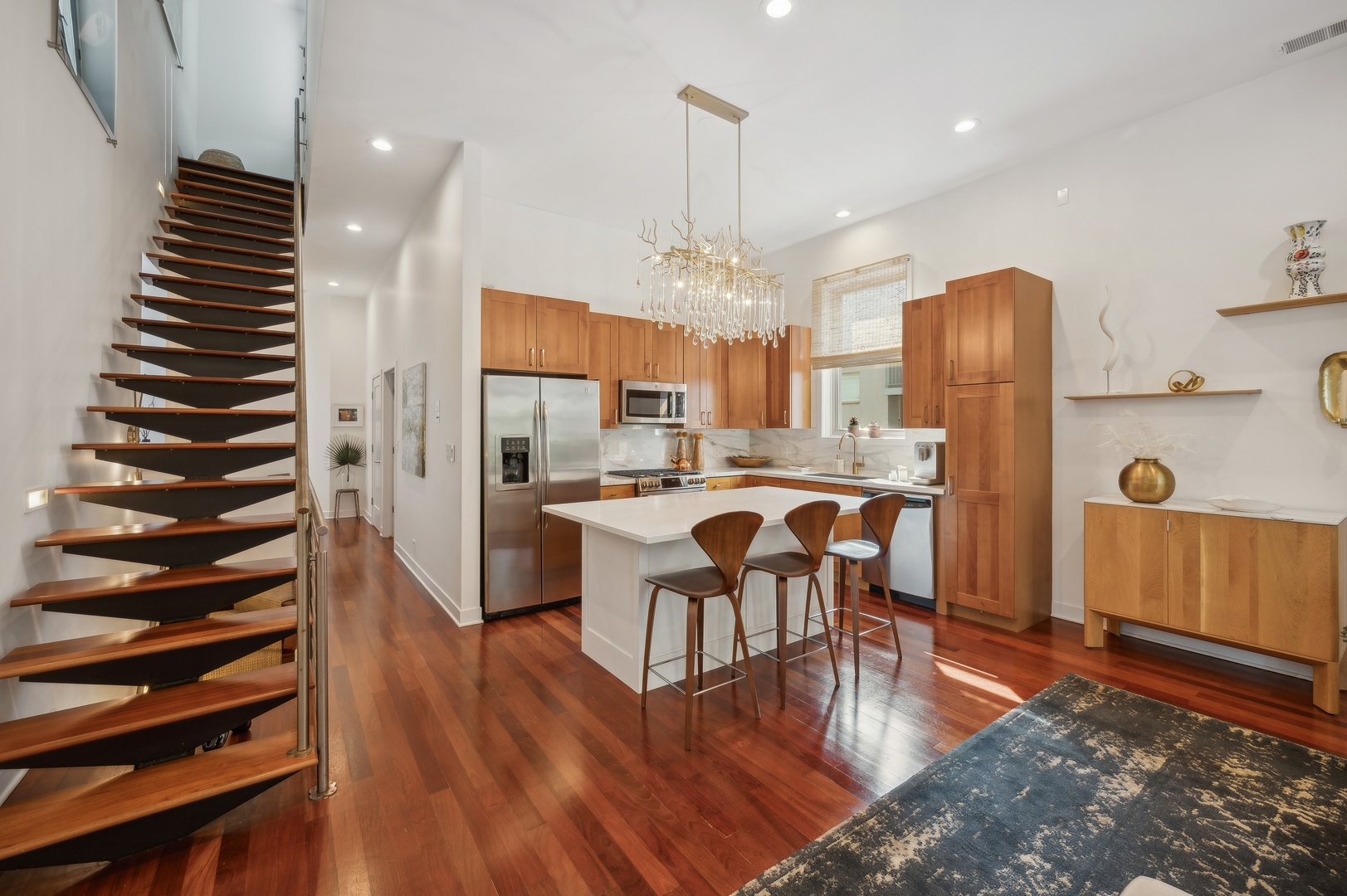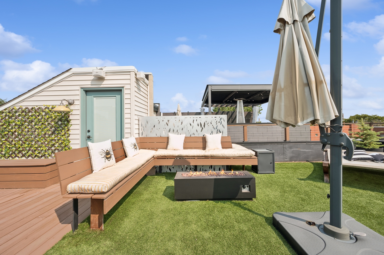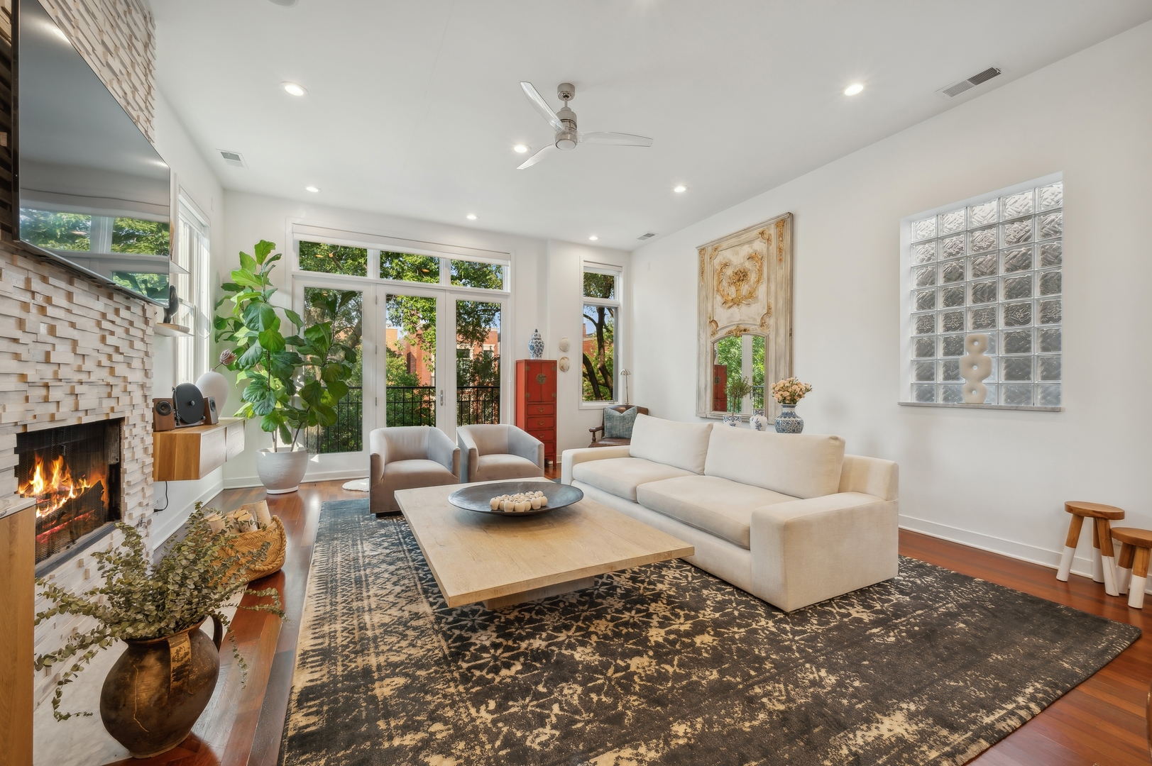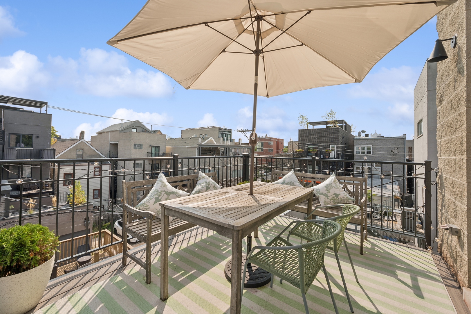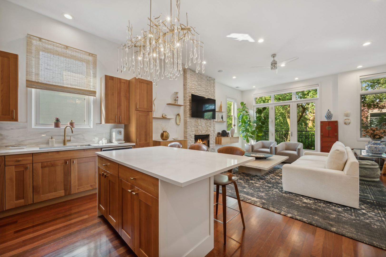 East Village Penthouse with private built out Rooftop deck! Located in the heart of booming West Town, this meticulously updated 2 bed, 2 bath condo with 11ft ceilings offers breathtaking finishes met with timeless charm. This sun-drenched, west-facing, open concept floor plan features a stunning remodeled kitchen - upgrades include quartz island, porcelain countertops, GE 6 burner range and complete GE appliance package. Living room features a stunning stone gas burning fireplace, Carrera marble window ledges, new window treatments, lighting fixtures, ceiling fans and hardware throughout. Right off the living room is easy access to a private built out rooftop deck with skyline views. Down the hall you'll find a gorgeously remodeled guest bathroom and shower, second bedroom and primary bedroom with updated dual vanity ensuite bathroom with a separate shower/jacuzzi tub. Primary bedroom features a recently built out closet and storage system, brand new hardwood floors and an additional outdoor space with brand new Trex decking. Other updates include newly carpeted stair runner entry, Pella doors, Nest Eco thermostat and brand new LG thinQ washer/dryer package. Assigned garage parking space included in the price. Steps to restaurants and cafes, boutique shopping, CTA blue line and all that West Town has to offer!
