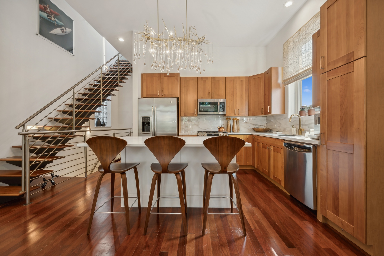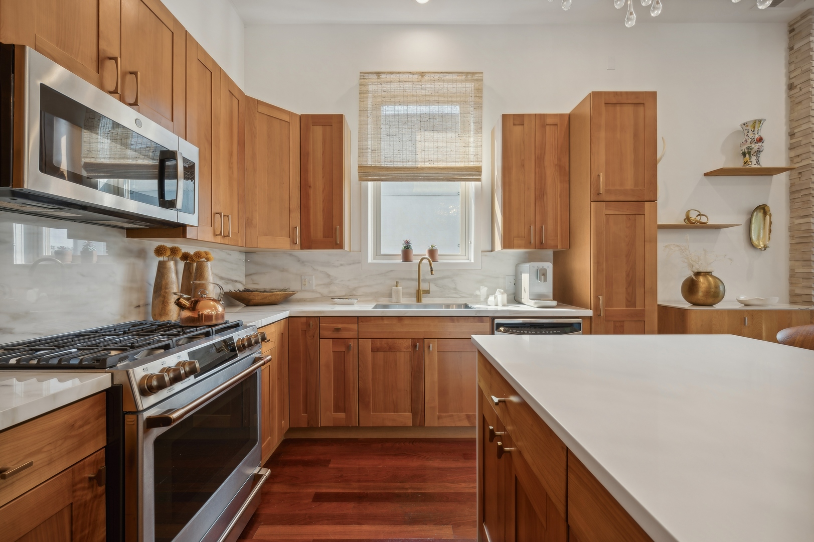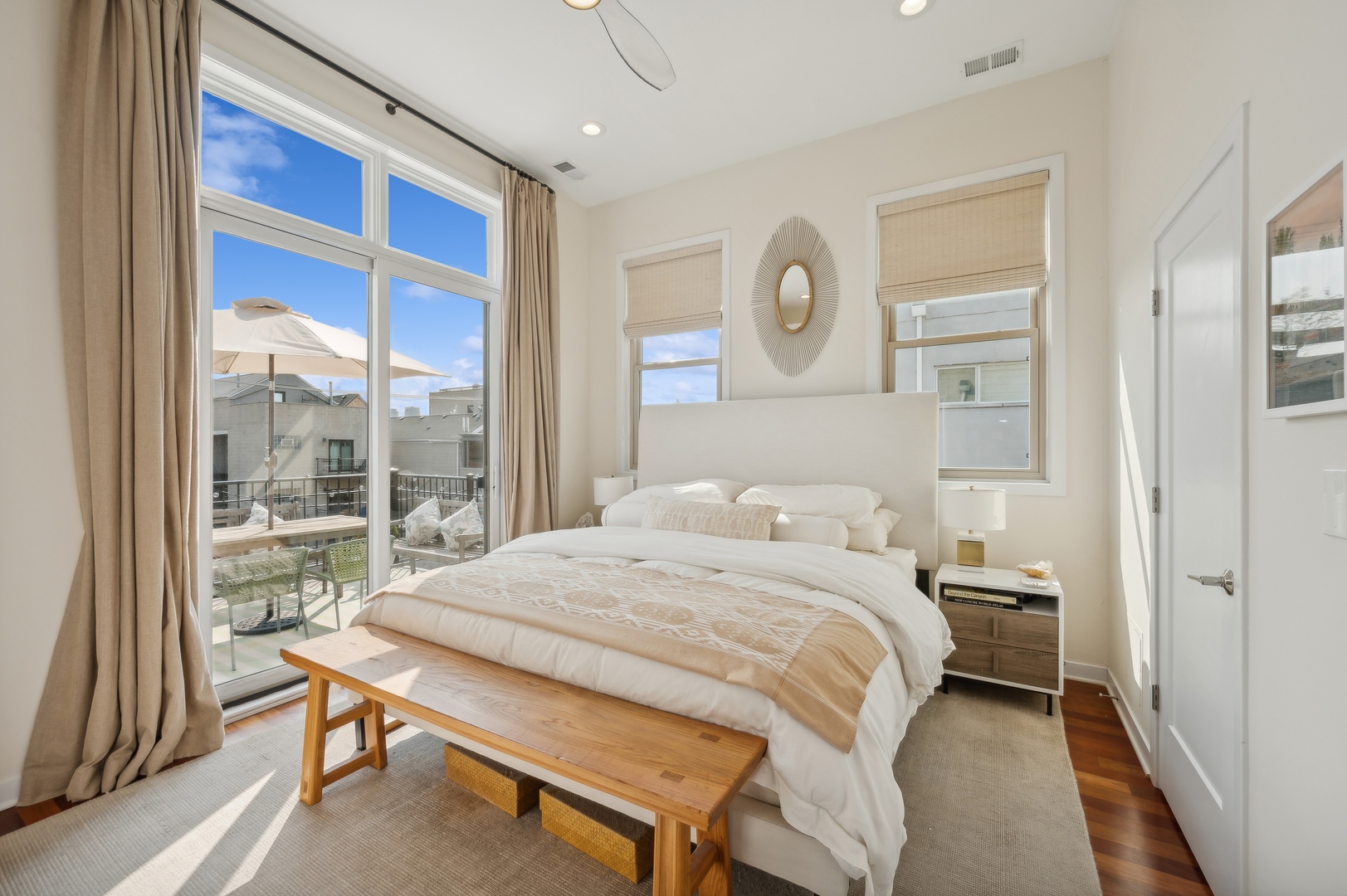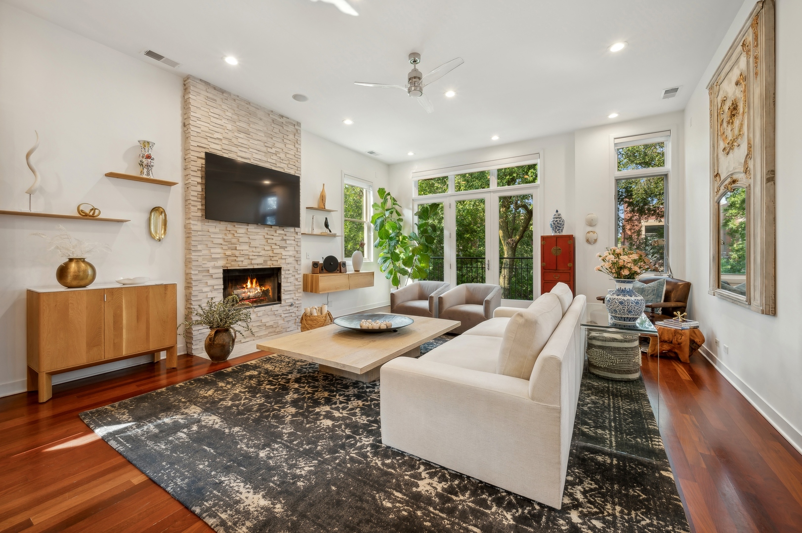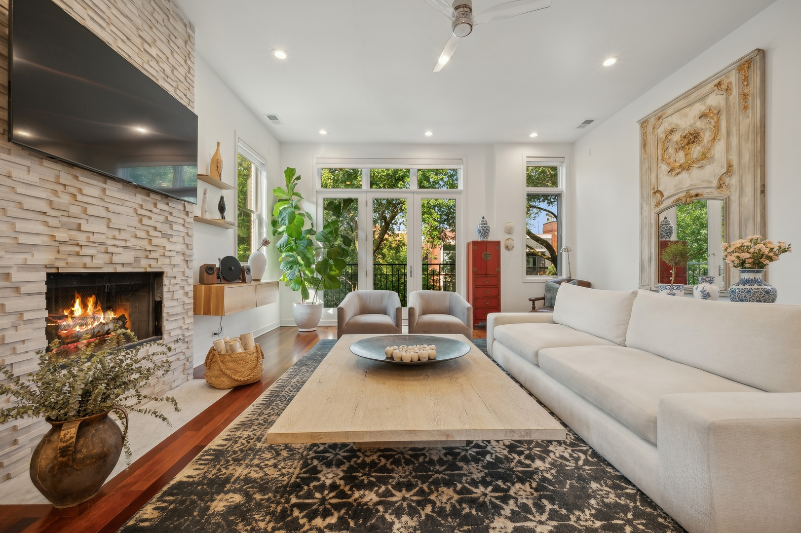 East Village Penthouse with private built out Rooftop deck! Located in the heart of booming West Town, this meticulously updated 2 bed, 2 bath condo with 11ft ceilings offers breathtaking finishes met with timeless charm. This sun-drenched, west-facing, open concept floor plan features a stunning remodeled kitchen - upgrades include quartz island, porcelain countertops, GE 6 burner range and complete GE appliance package. Living room features a stunning stone gas burning fireplace, Carrera marble window ledges, new window treatments, lighting fixtures, ceiling fans and hardware throughout. Right off the living room is easy access to a private built out rooftop deck with skyline views. Down the hall you'll find a gorgeously remodeled guest bathroom and shower, second bedroom and primary bedroom with updated dual vanity ensuite bathroom with a separate shower/jacuzzi tub. Primary bedroom features a recently built out closet and storage system, brand new hardwood floors and an additional outdoor space with brand new Trex decking. Other updates include newly carpeted stair runner entry, Pella doors, Nest Eco thermostat and brand new LG thinQ washer/dryer package. Assigned garage parking space included in the price. Steps to restaurants and cafes, boutique shopping, CTA blue line and all that West Town has to offer!