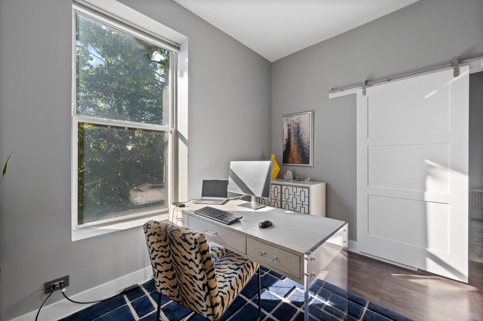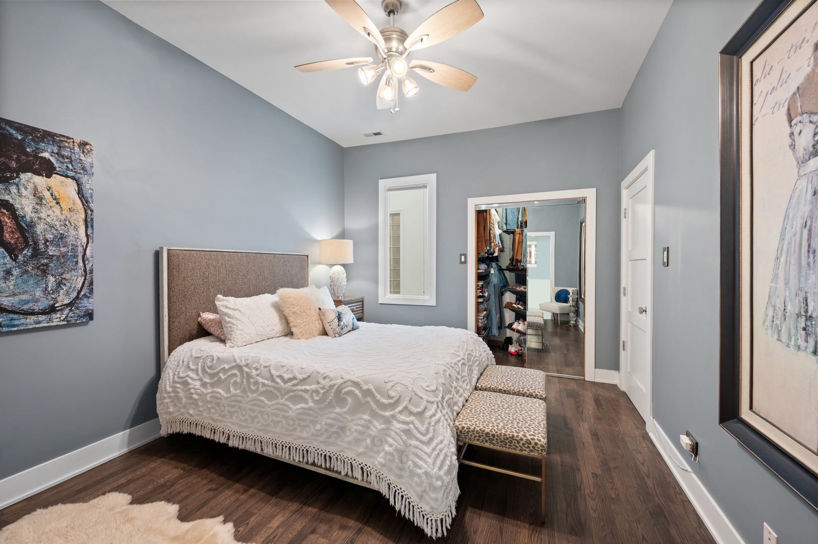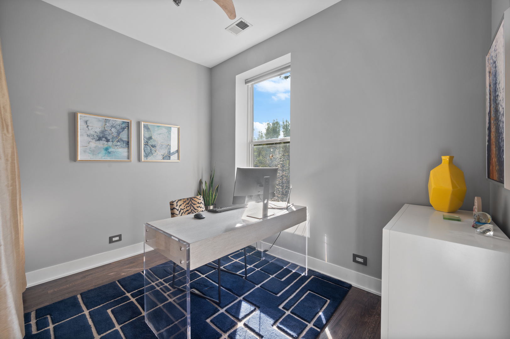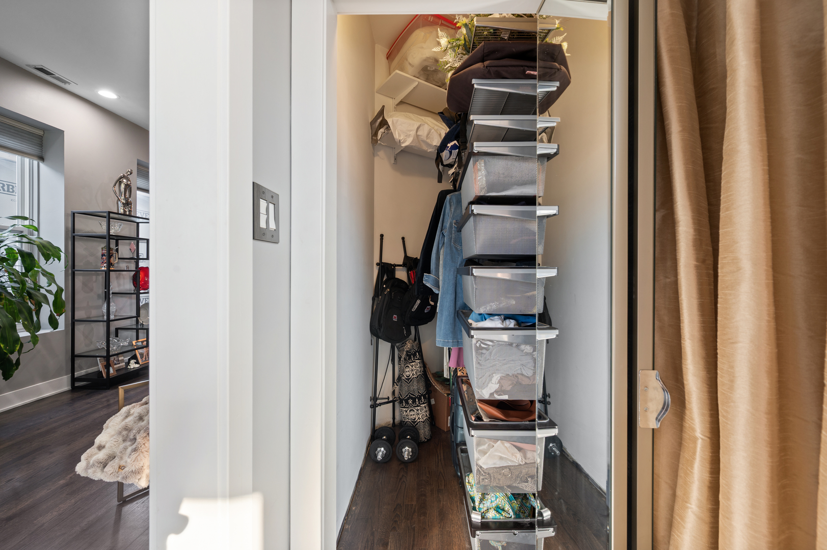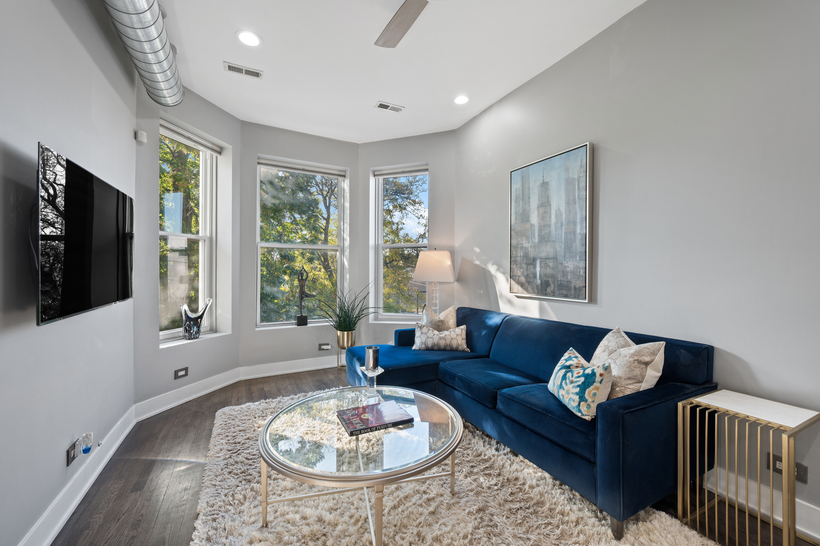 OH scheduled for tomorrow 10/26 has been canceled. Nestled on a quiet, tree-lined street, this beautifully maintained 2-bed, 2-bath condo sits in the heart of Logan Square. The modern home offers a loft-like feel with high ceilings, large windows, and an open layout perfect for entertaining. The kitchen features quartz countertops, a premium Samsung appliance suite with a 5-burner gas stove, custom pantry with sliding shelves, and a ZEPHYR dual-zone wine fridge. The primary suite includes custom ELFA built-ins and a fully renovated, luxury private en-suite with a MOEN smart shower system, ROBERN vanity, and an additional custom-built closet for jewelry and delicates. The second full bath features similar luxury finishes with all MOEN fixtures and a ROBERN vanity. A sun-drenched second bedroom is ideal for guests or a home office, complete with a sliding barn door and custom ELFA closet built-ins. Behind the beautiful custom barn doors at the end of the hall, you'll find full-size stacked laundry and additional storage. Redone in 2005, this well-maintained and well-managed boutique building has seen major upgrades, including brand-new vinyl siding, sanding and rebuffing of all back decks, a 2021 ROOF replacement, and tuck-pointing and painting of the front facade. Secure gated PARKING is included in the price! All just steps from Logan Square favorites like Damn Fine Coffee, Giant, Scofflaw, The Moonlighter, Lula Cafe, and Outside Voices, and within walking distance to the 606 Trail, Logan Square Farmers Market, Palmer Square Park, and only one mile from the Logan Square Blue Line stop. You won't want to miss this one!